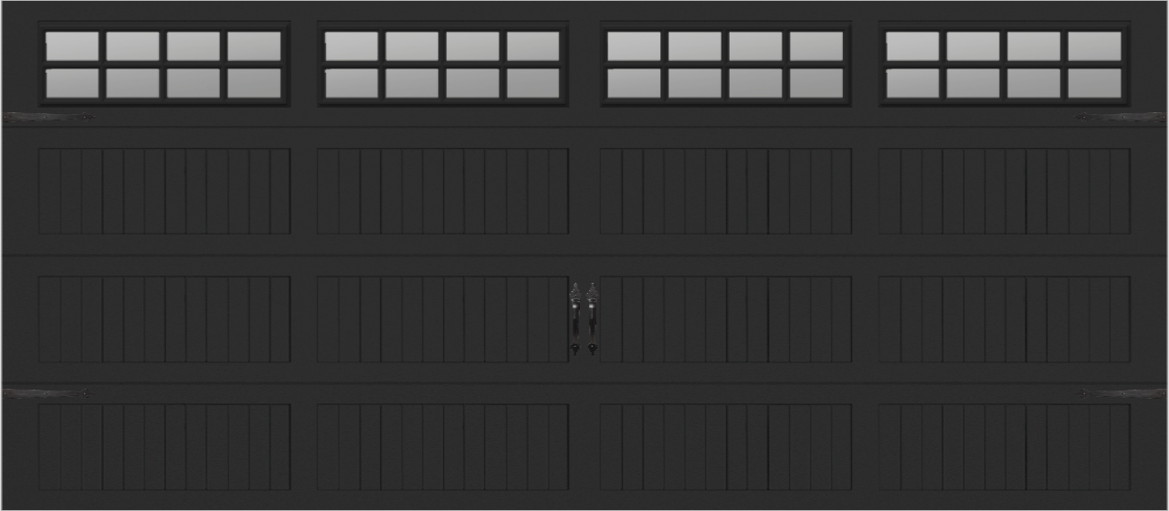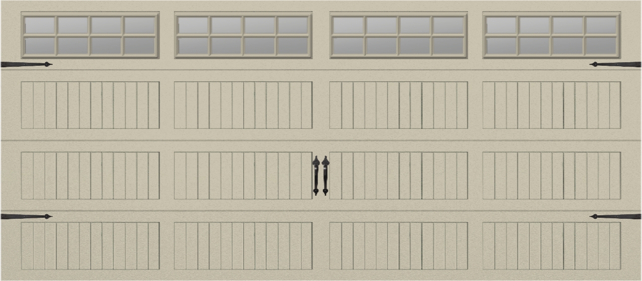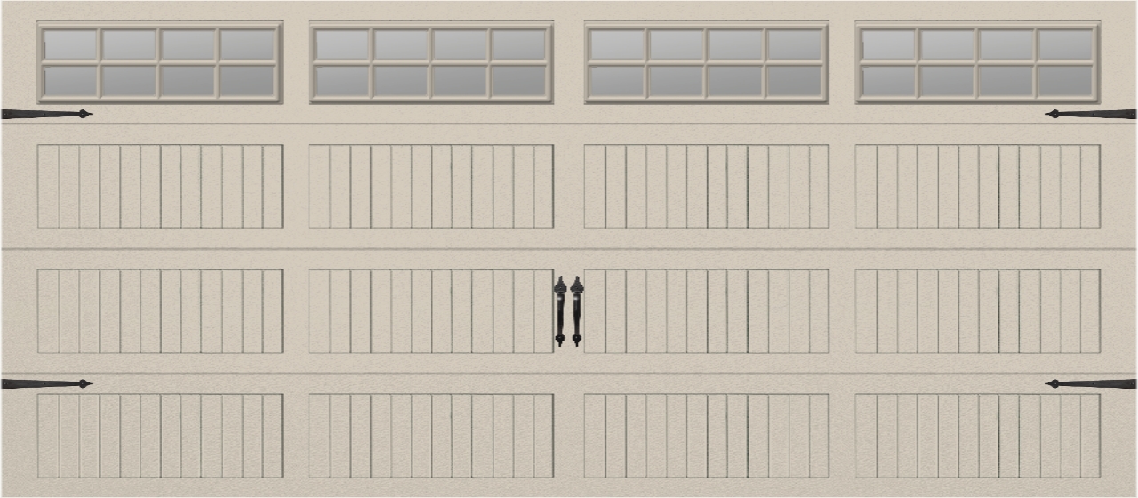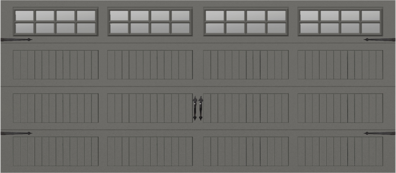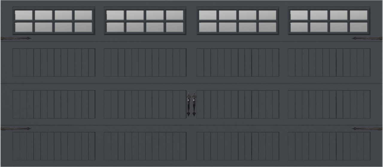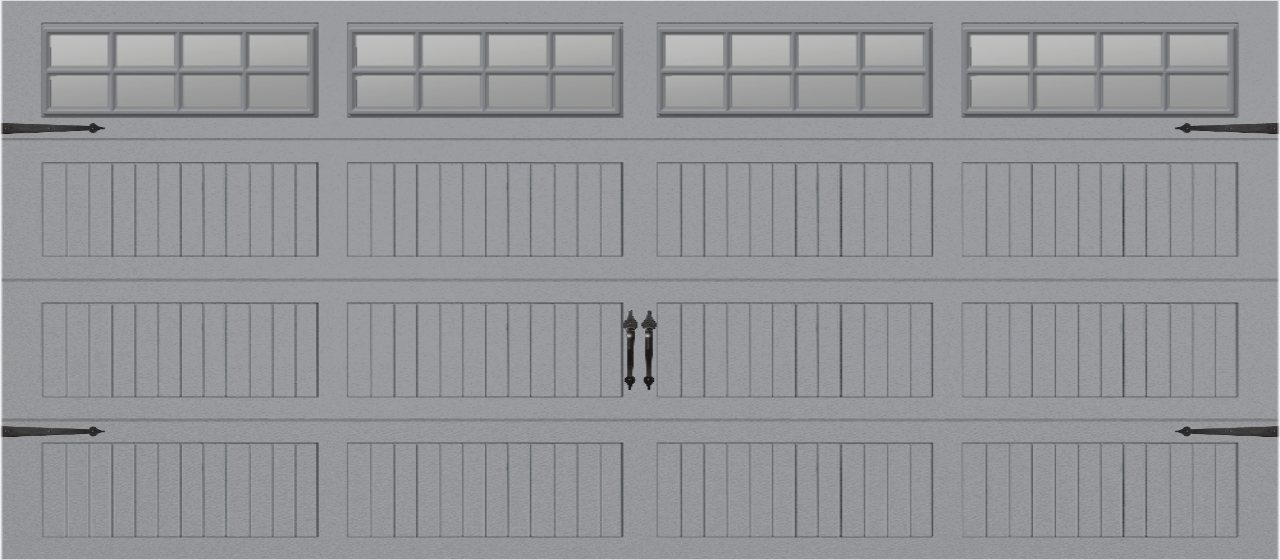 8 Foot Wide x 7 Foot High Garage Door, insulated, 2-sided steel, polystyrene insulation, R-9.65, 27 ga. With windows. Customize your color, panel style, and window design. 4-6 week delivery lead time. Made in the USA. Our products are deliverable only to the following counties: Santa Cruz, Monterey, Santa Clara, and Alameda.